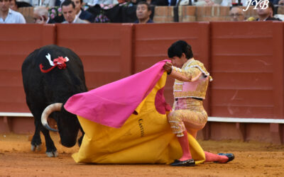 Pelicano, n°184 de Fuente Ymbro, s'intéresse aux occupants du burladero, à Séville le 12 avril 2013. ©JYB archives Que cherche le toro derrière le burladero ? Bien malin qui saurait le dire: son mayoral est à l'autre bout de l'arène et rien ni...