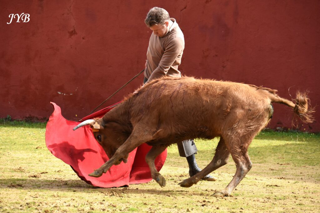 Clemente accueille en doblones, la première vache de la tienta, chez Hermanos Sampedro, le 3 février 2026. ©JYB