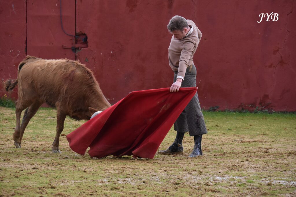 Malgré le temps exécrable, (alerte rouge pour tempête sur le Sud de l’Espagne et 150 mm de pluie chaque jour !), Clemente n’a pas voulu rater l’occasion de tienter en profitant du groupe réuni par Andalucia Aficion. On connait son sérieux et son engagement, et on en a eu la preuve au cours de cette tienta bénie par le ciel (qui s’est éclairci pendant l’épreuve), ce qui prouve aussi que la chance joue en faveur des courageux.