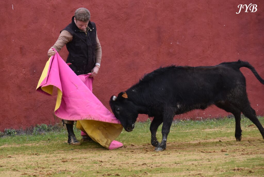 Clemente tientait chez Hermanos Sampedro ce 3 février 2026. Après une première vache un peu décevante par sa mansedumbre, sortait une vache plus encastée qui permettait au maestro quelques jolies séquences à la cape.