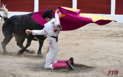 Mario Vilau à porta gayola, devant Canadiense, n°39 de Quintas, à Céret, le 13 juillet 2025. ©JYB Novillada attendue avec la découverte de Quintas, un élevage peu connu, d’origine Vicente Martinez. Comme souvent dans les novilladas, les novilleros se sont cru obligés de se défier et de faire des gestes en se mettant à porta … Lire la suite de CERET, NOVILLADA : BILAN 7 PORTA GAYOLA !