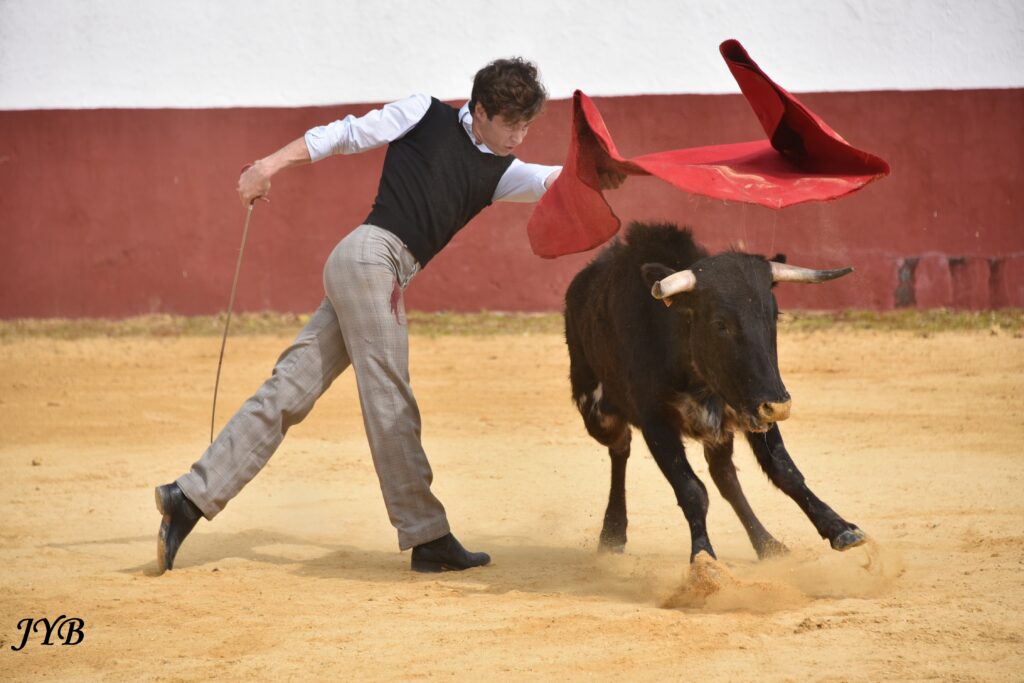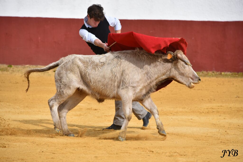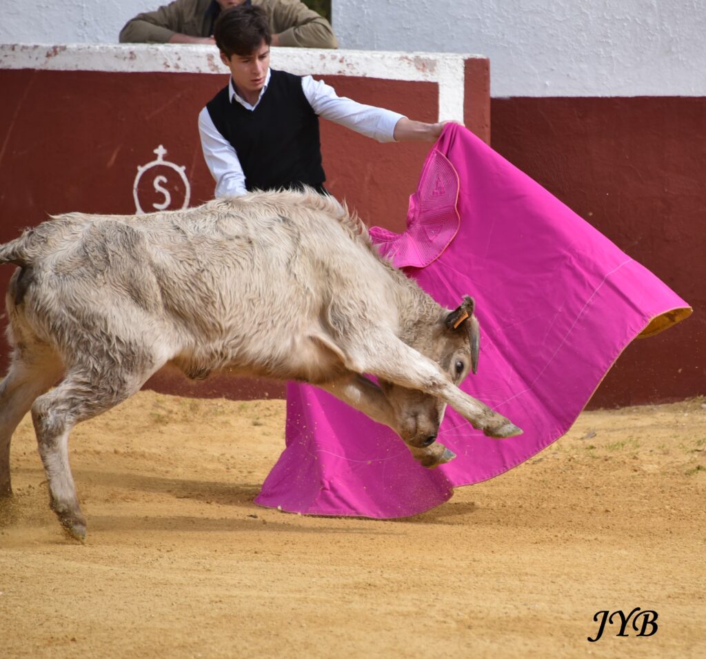 Pecho de Christian Parejo à une vache de Luis Algarra, à l’élevage le 25 février 2026. ©JYB