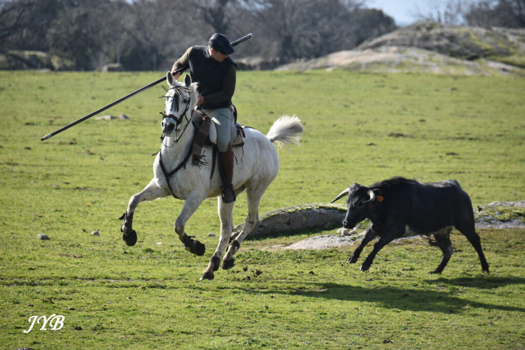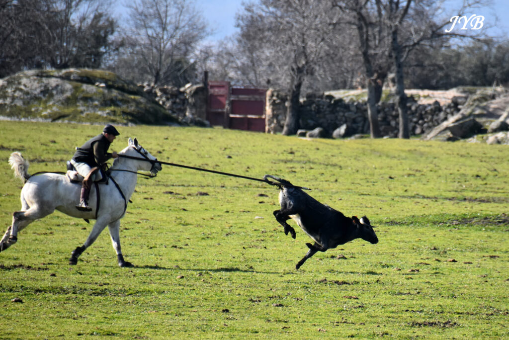 La tienta a campo abierto comprend 2 phases : l’acoso y derribo pour amener la vache au cheval et lui infliger un premier test: si elle recharge le cavalier qui l’a renversé elle fait preuve de bravoure.