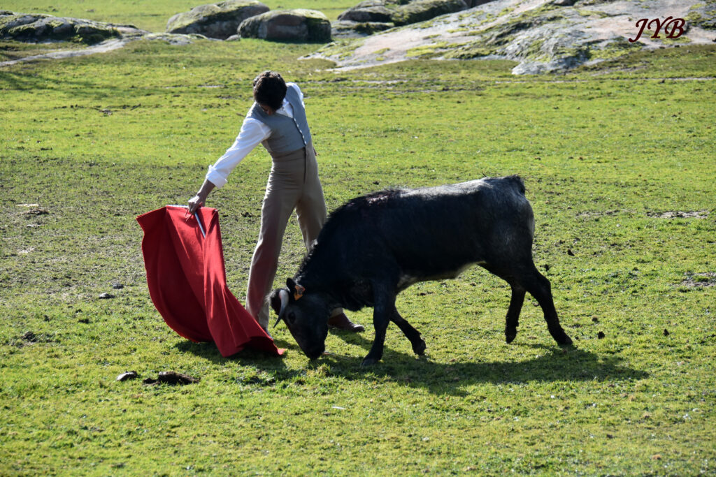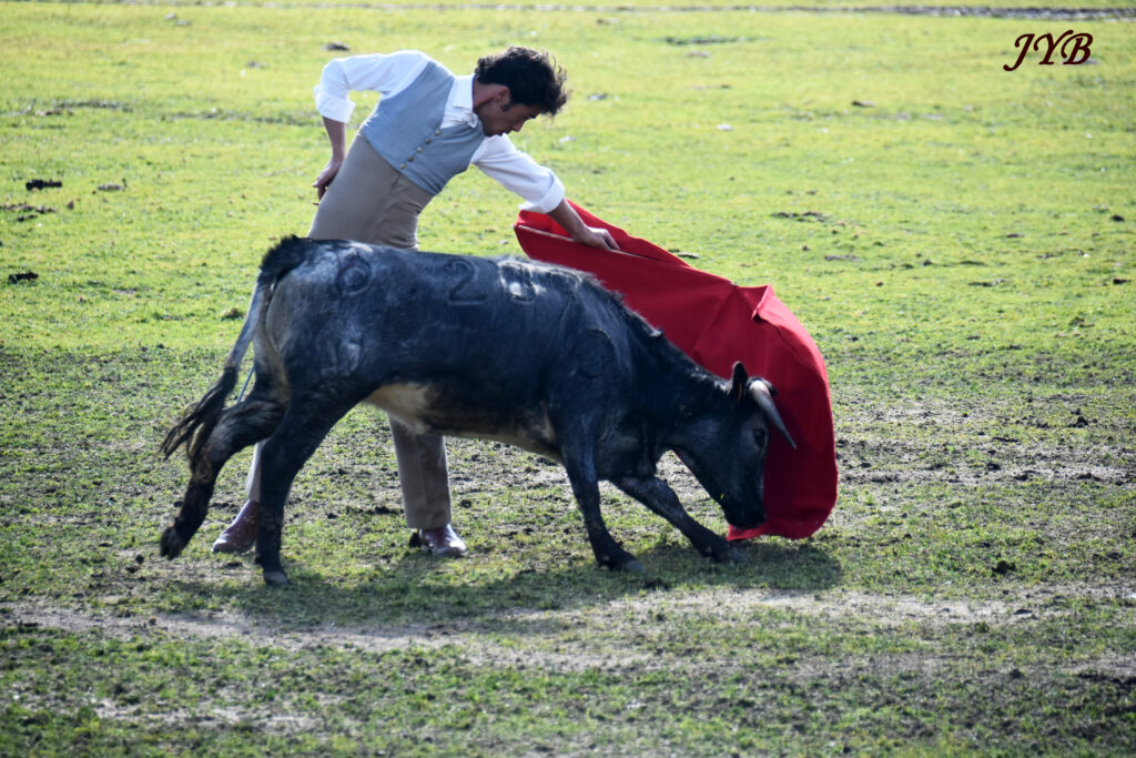 S’ensuit après les piques une tienta traditionnelle, sauf qu’elle se déroule en plein champ.