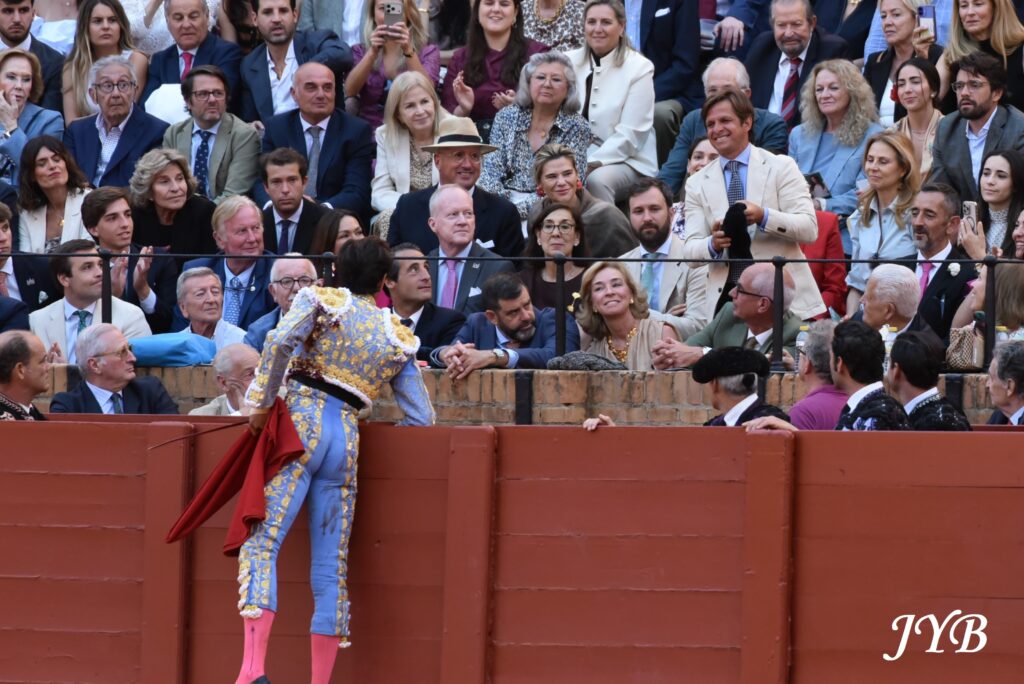 Brindis de son second toro, de Roca Rey à El Juli, à Séville, le 23 avril 2026. ©JYB
