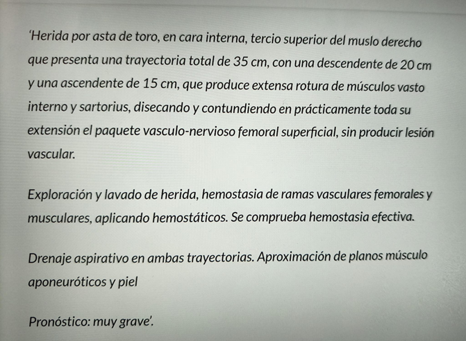 Parte facultativo publié par les médecins après l’évacuation de Roca Rey vers l’höpital.