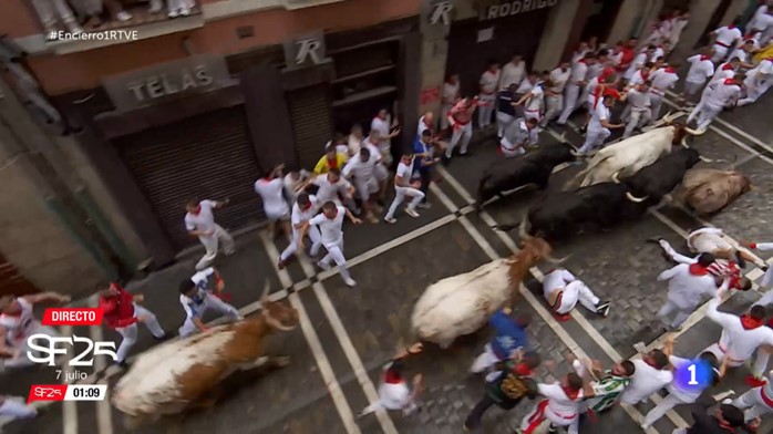 Encierro de Fuente Ymbro, à Pampelune le 7 juillet 2025. Capture d’écran RTVE