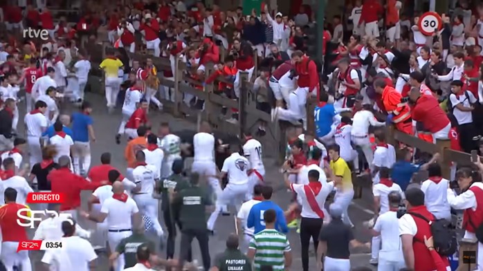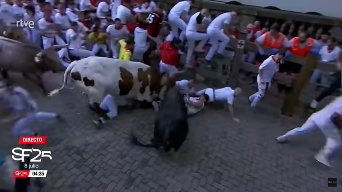 Les encierros de Cebada Gago ont toujours eu la réputation d’être animés avec de nombreux blessés. Ces dernières années sur 33 encierros les Cebada ont, record, encorné 61 coureurs dont 19 un 8 juillet. Celui de ce jour ne fait pas exception avec un blessé par corne à l’aisselle et 8 admissions à l’hôpital au total.