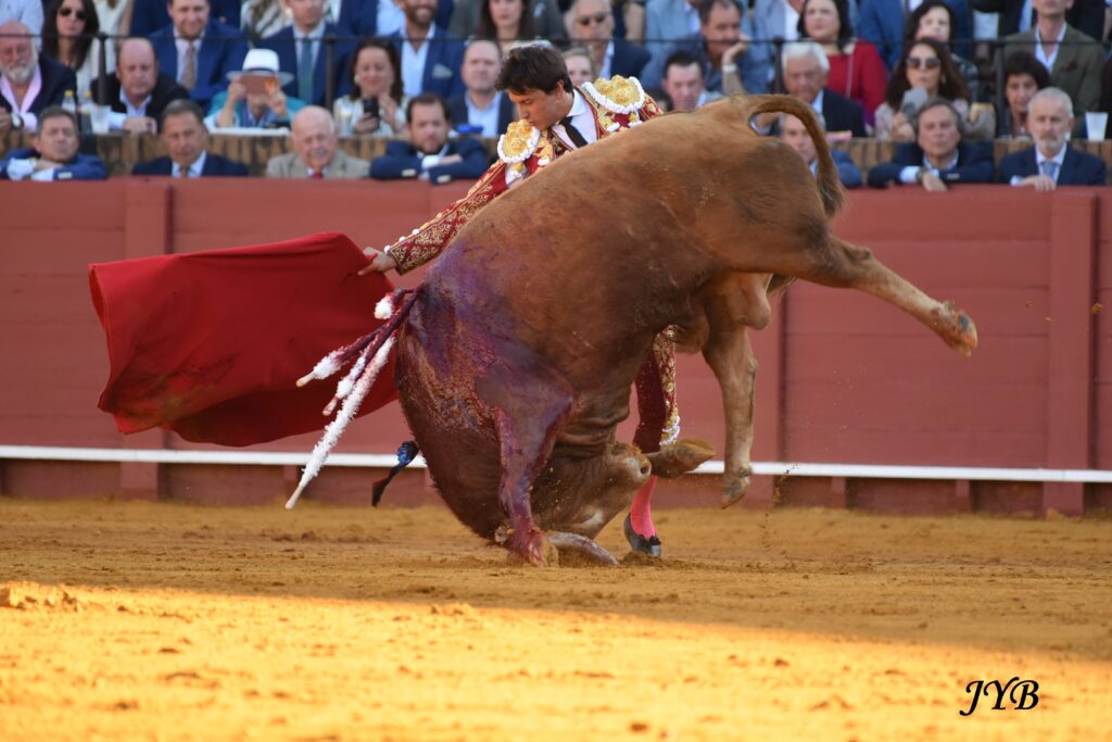 Andres Roca Rey, lors de la corrida de Domingo Hernandez, à Séville, le 17 avril 2026. ©JYB