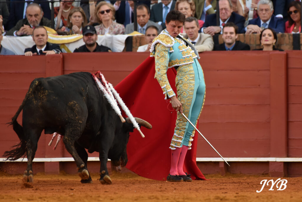 Une nouvelle grande série de derechazos liés et des circulaires inversées précèdent l’estocade desprendida mais concluante. 2 oreilles fortement demandées par l’arène entrouvrent la porte du Prince.