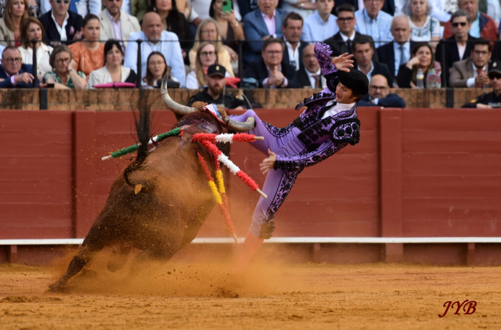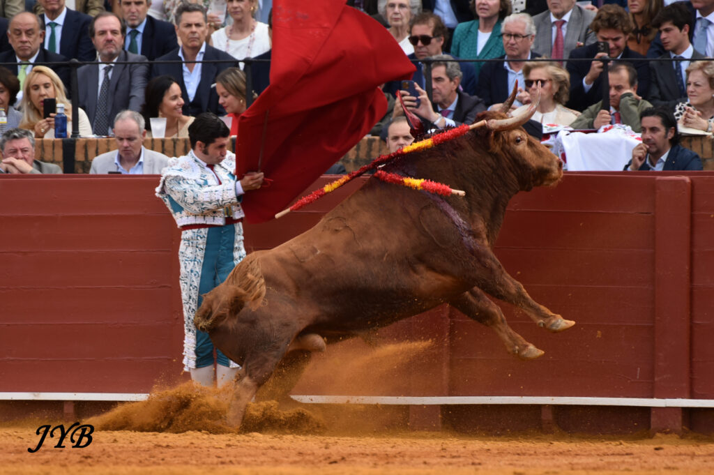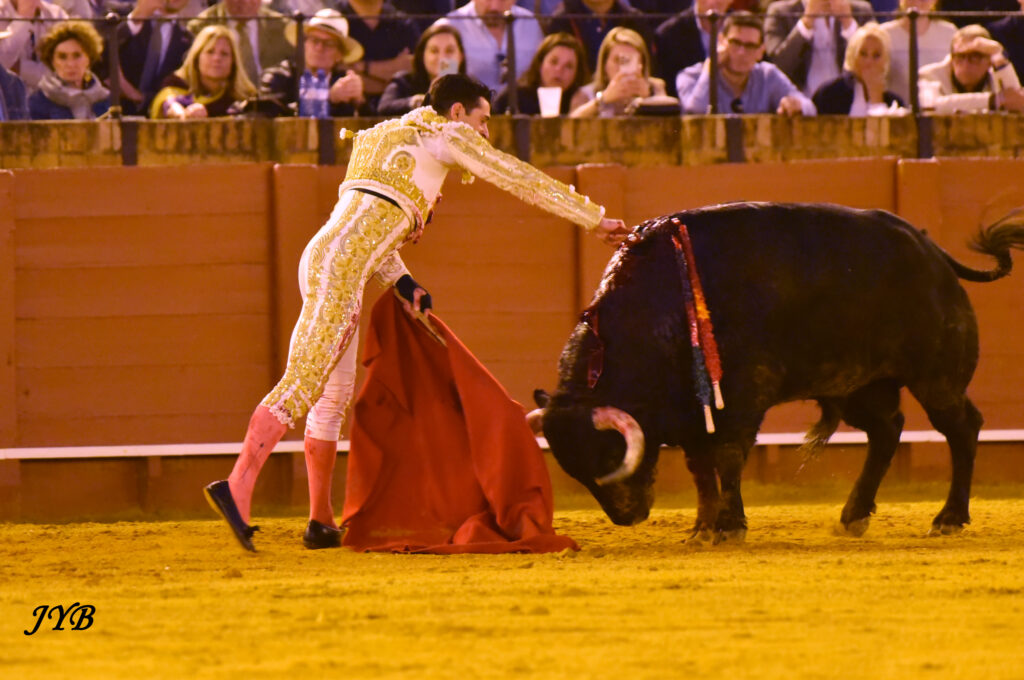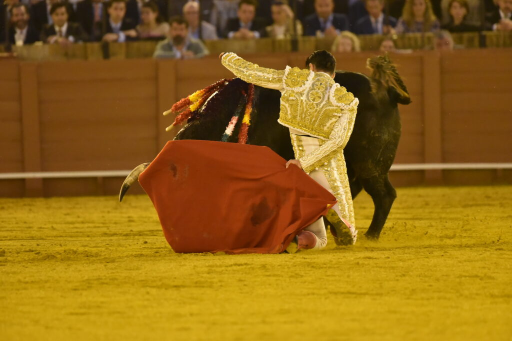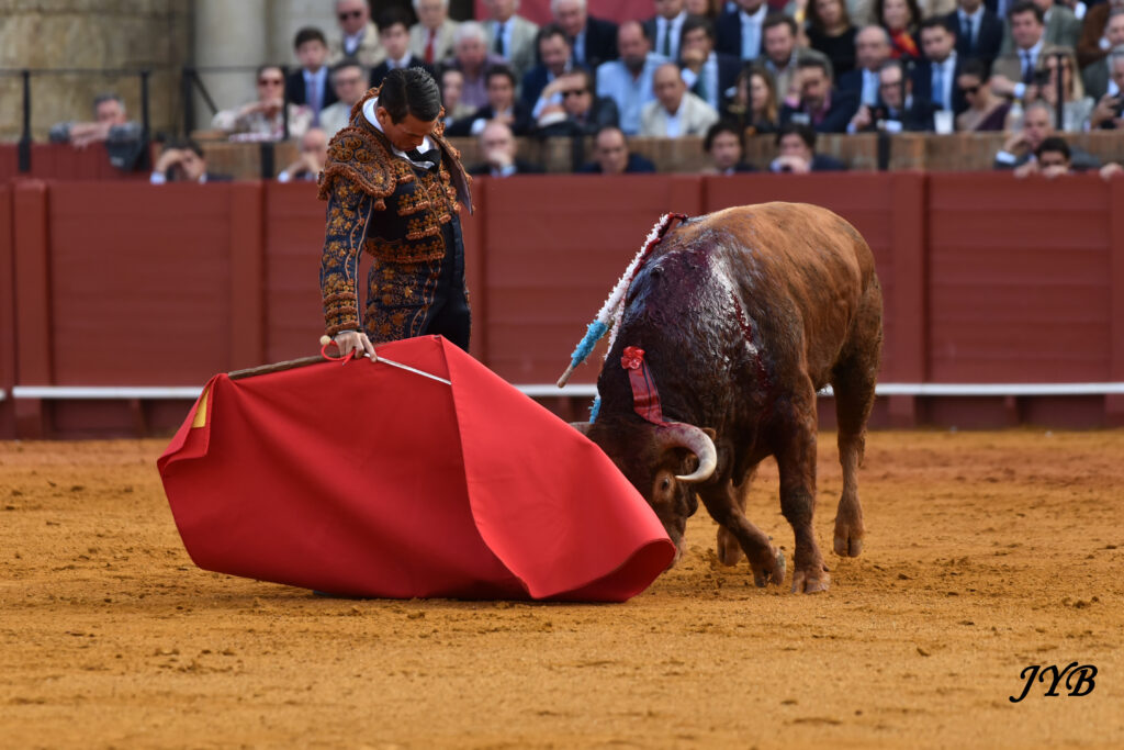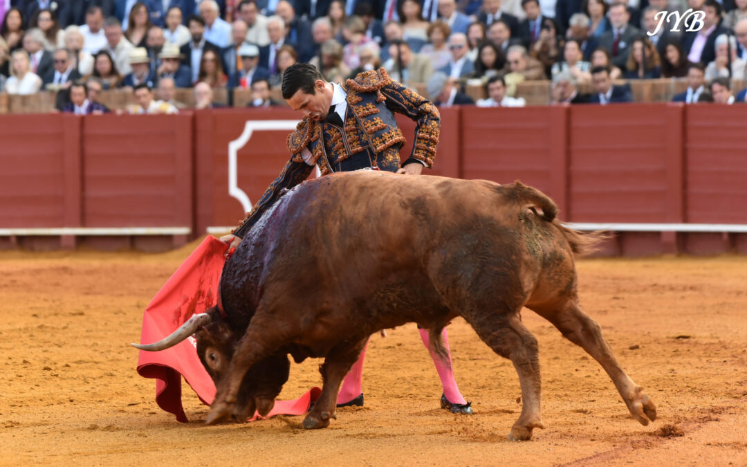 Ce ligazon se retrouve dans les naturelles ce qui enthousiasme la Maestranza, de même que les abanicos qui terminent la séquence. L’estocade en entrant droit est tombée, mais n’empêche pas l’attribution de l’oreille après pétition majoritaire.