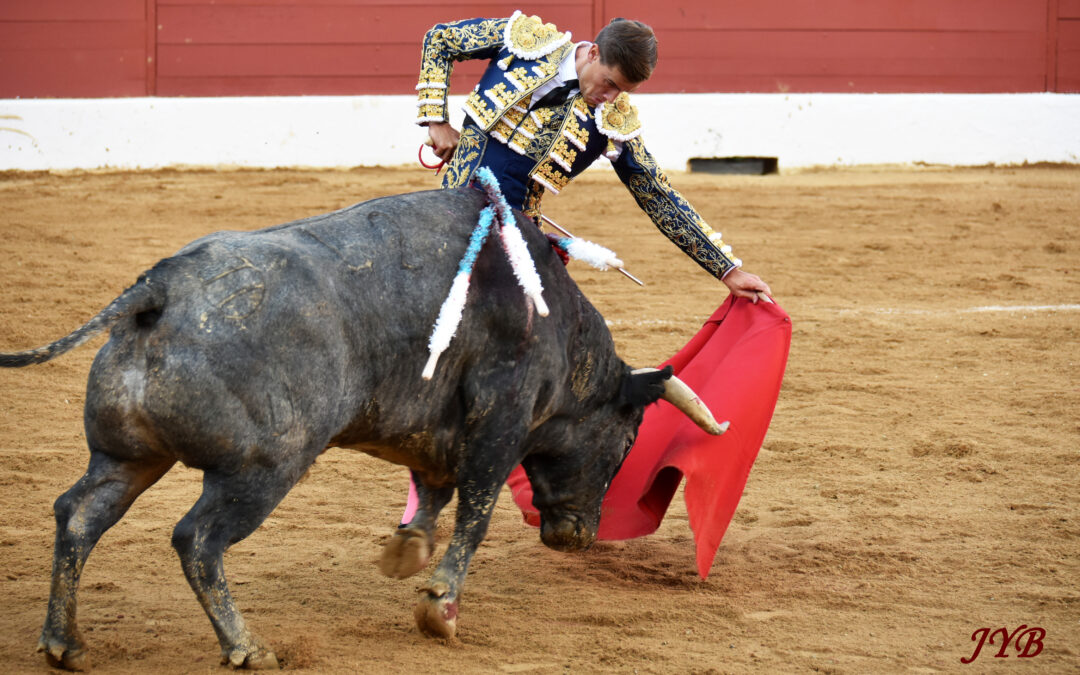 Luis Gerpe en naturelle devant Mandarino, n°42 de Saltillo, à Vic, le 7 juin 2025 tarde. ©JYB Président, il y aurait dû y avoir 2 oreilles au lieu de 2 vueltas ! Le lot de Saltillo vu la veille dans les corrales de Vic avait paru aux aficionados les plus rigoureux...