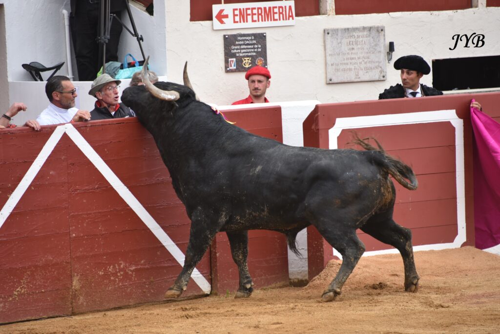 Que cherche le toro derrière le burladero ? Bien malin qui saurait le dire: son mayoral est à l’autre bout de l’arène et rien ni personne qu’il pourrait connaitre ne se trouve là. Cherche-t-il à identifier ses adversaires ? Je n’ai pas la réponse.
