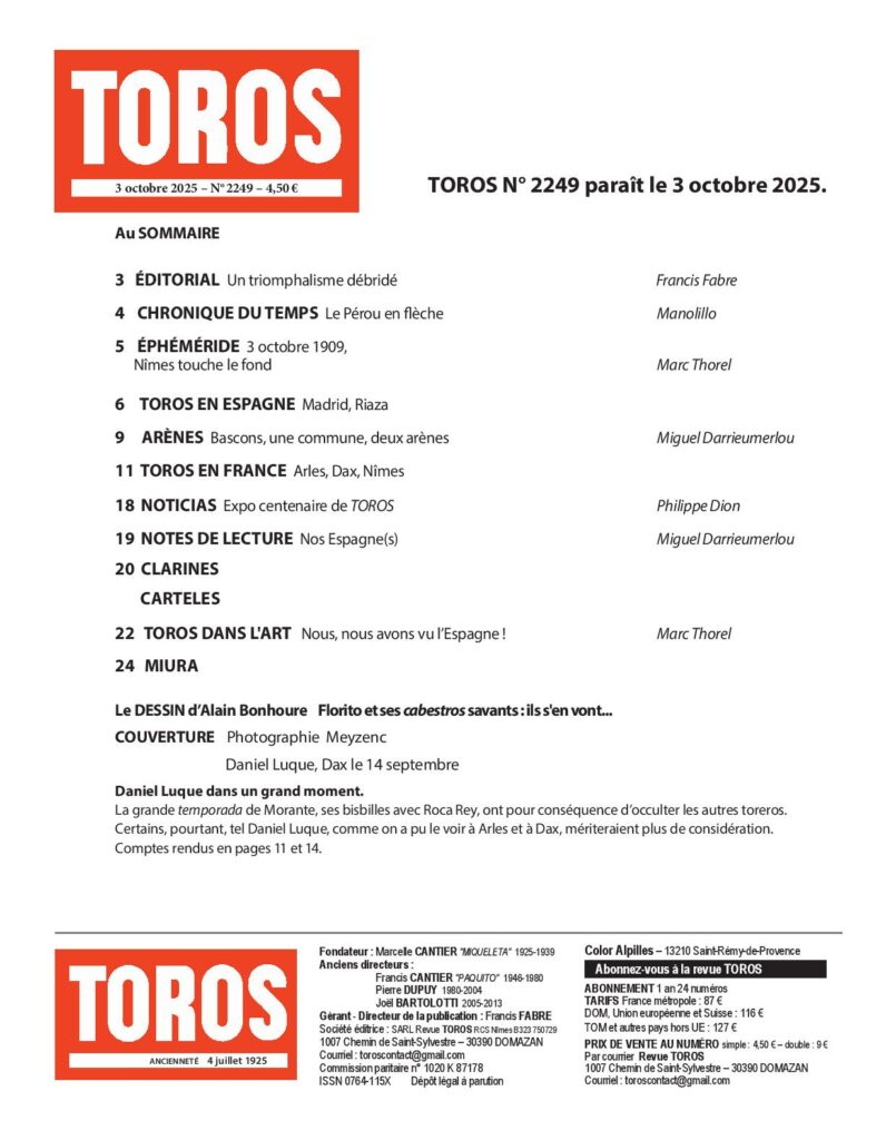 Revue Toros, 1007 chemin de Saint Sylvestre, 30390 DOMAZAN