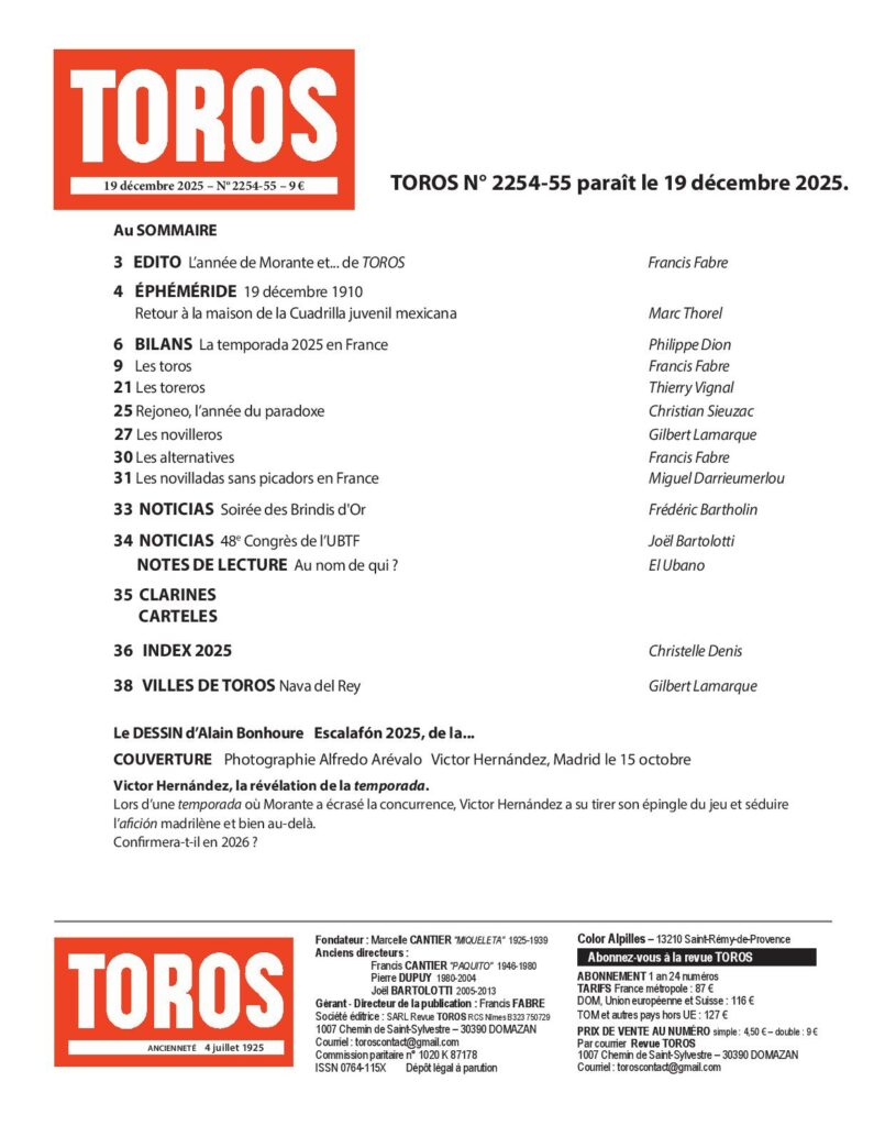 Le traditionnel numéro double de fin d’année de Toros parait cette semaine, avec le bilan de la temporada.