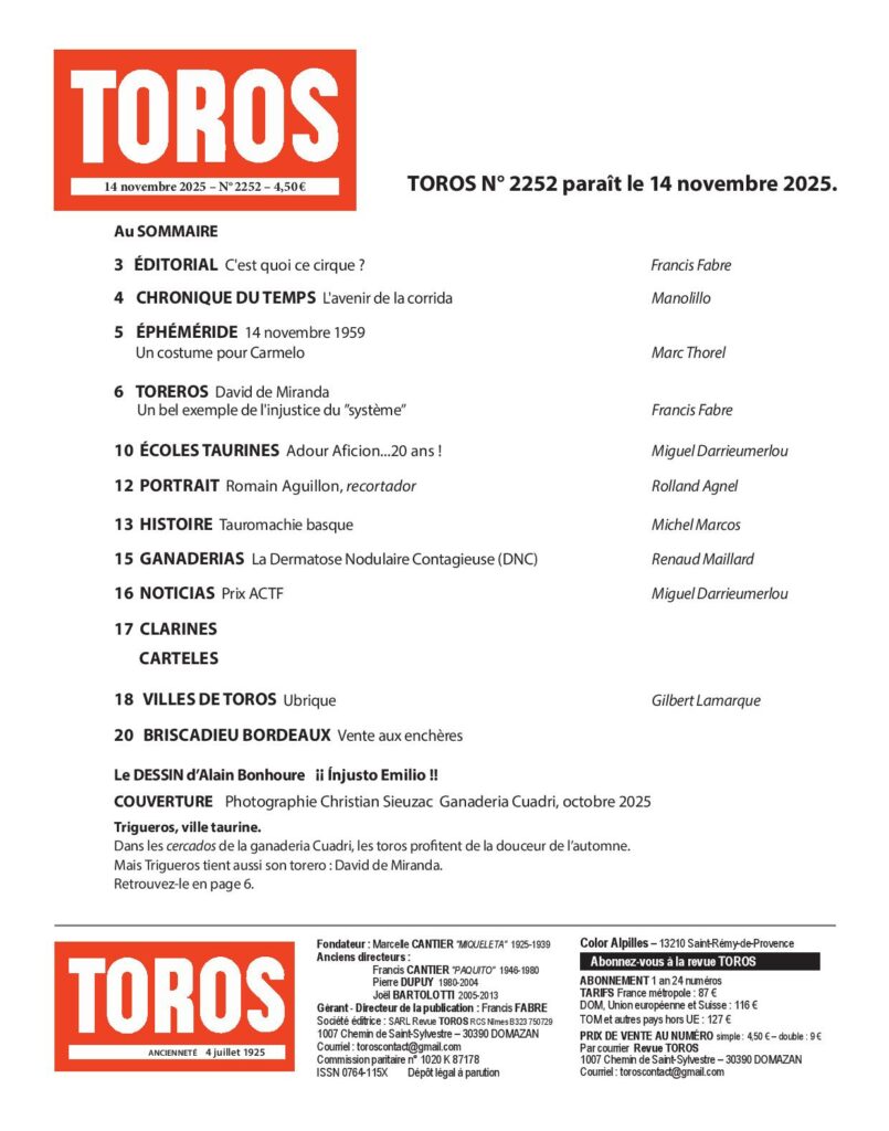 Revue Toros, 1007 chemin de Saint Sylvestre, 30390 DOMAZAN