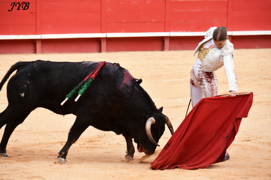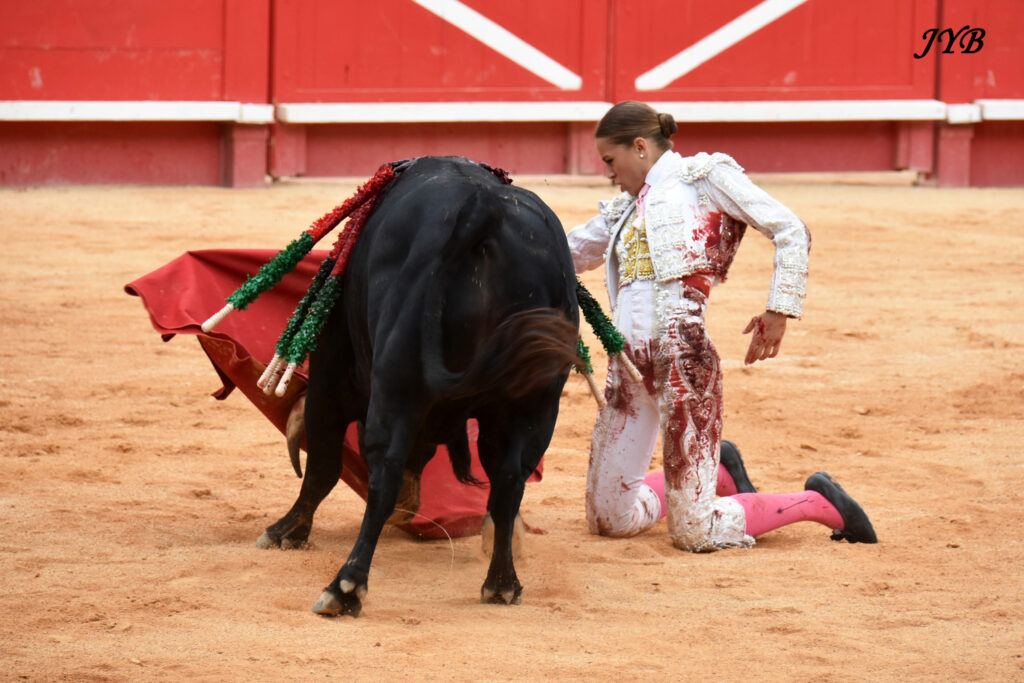 Olga Casado n’a pas paru très à son aise avec 2 novillos sans grandes qualités de Fuente Ymbro devant lesquels elle a multiplié les gestes, mettant en valeur ses qualités à la cape, mais n’a pas exercé un dominio parfait. Il est vrai qu’elle s’était absentée dans le couloir de l’infirmerie pendant que Perez toréait son deuxième toro.